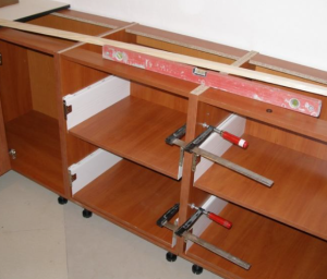 Установка кухонного гарнитура с выравниванием и креплением.